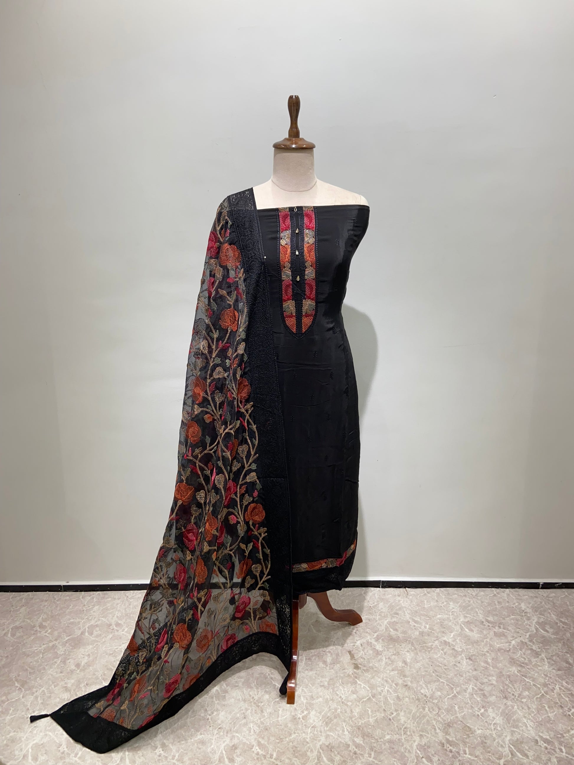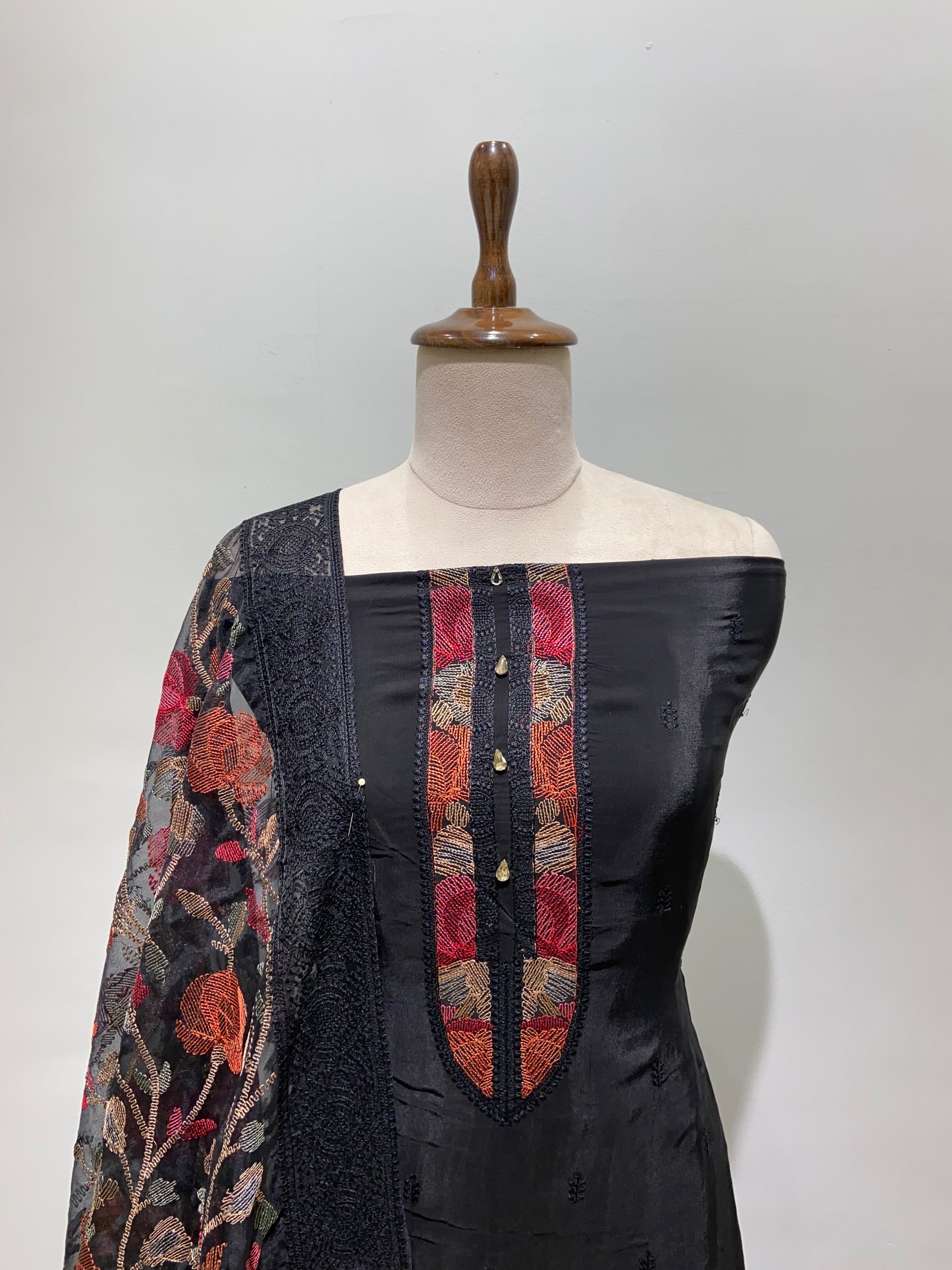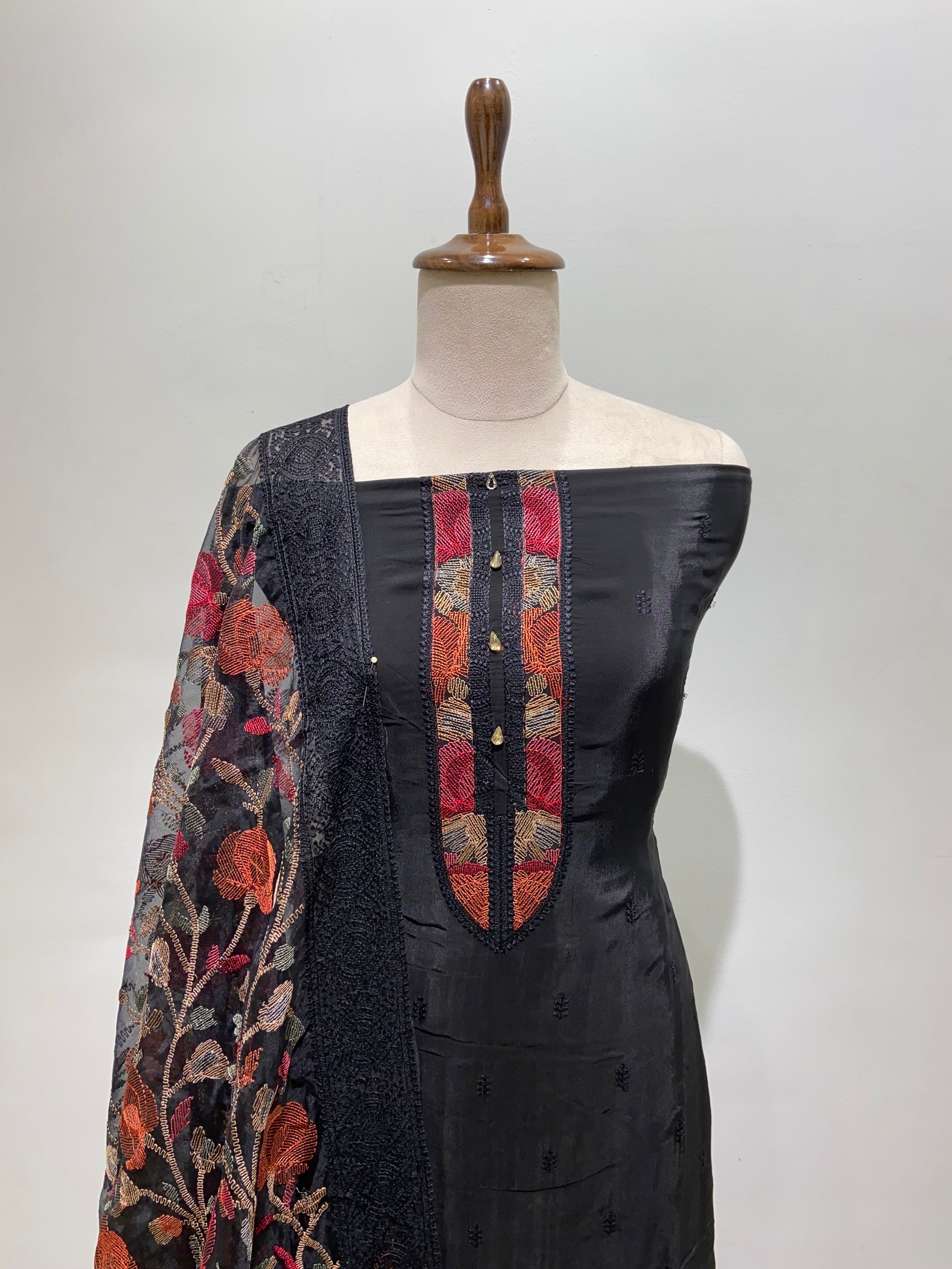 Black salwa suit set material with Dhaga work depatta