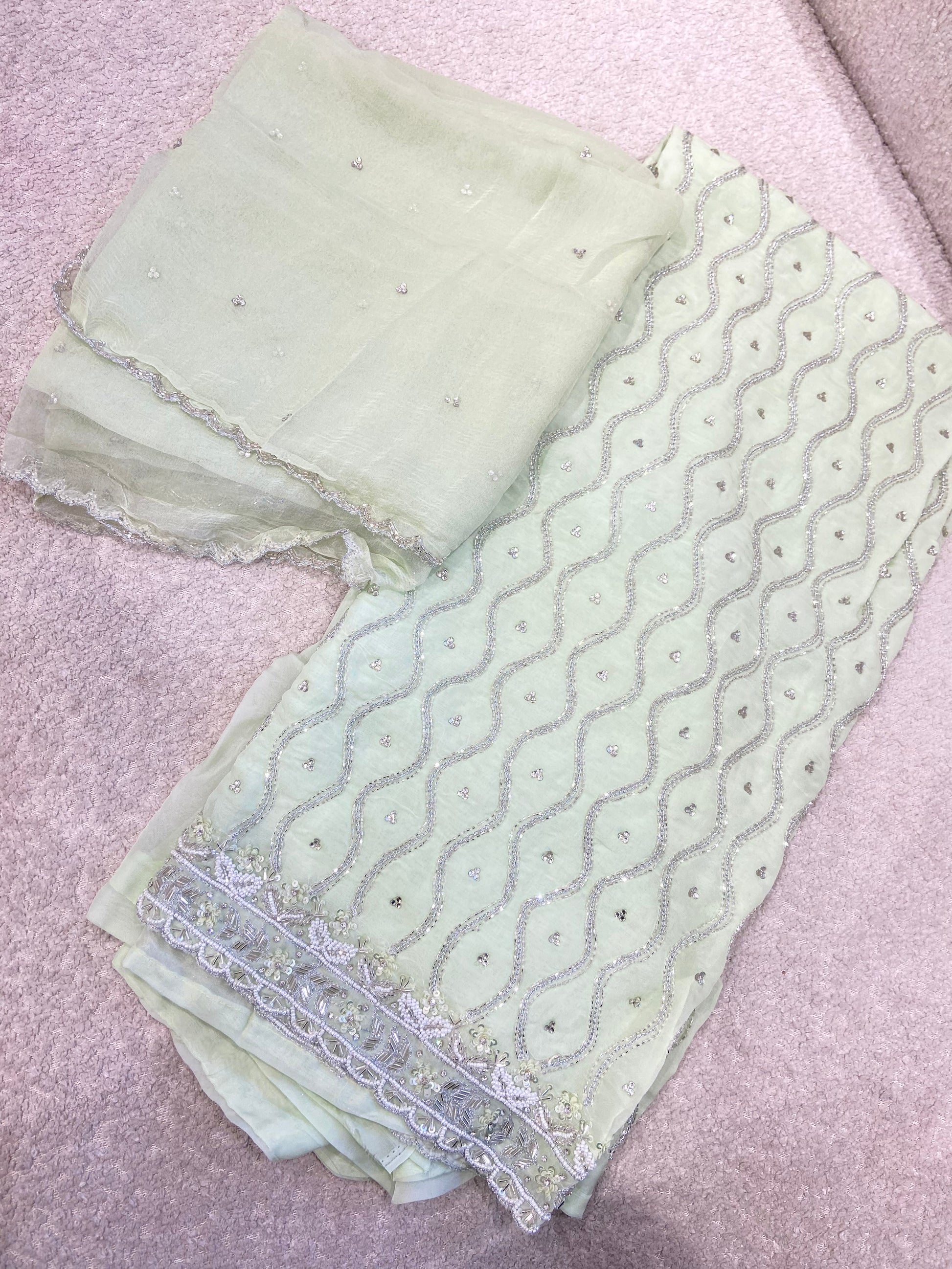Glass cutwork embroidery suit