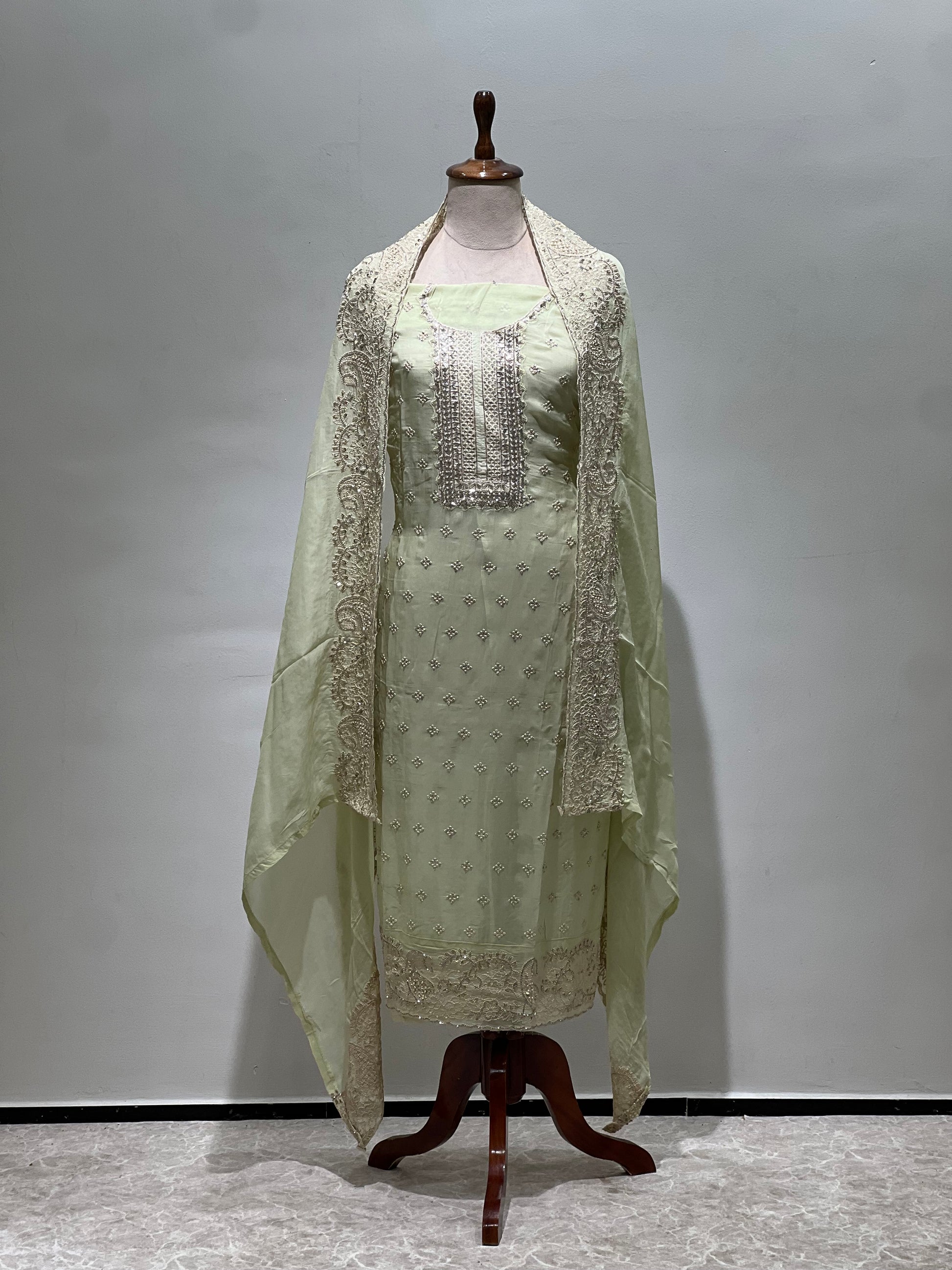 Green embroidery suit set material